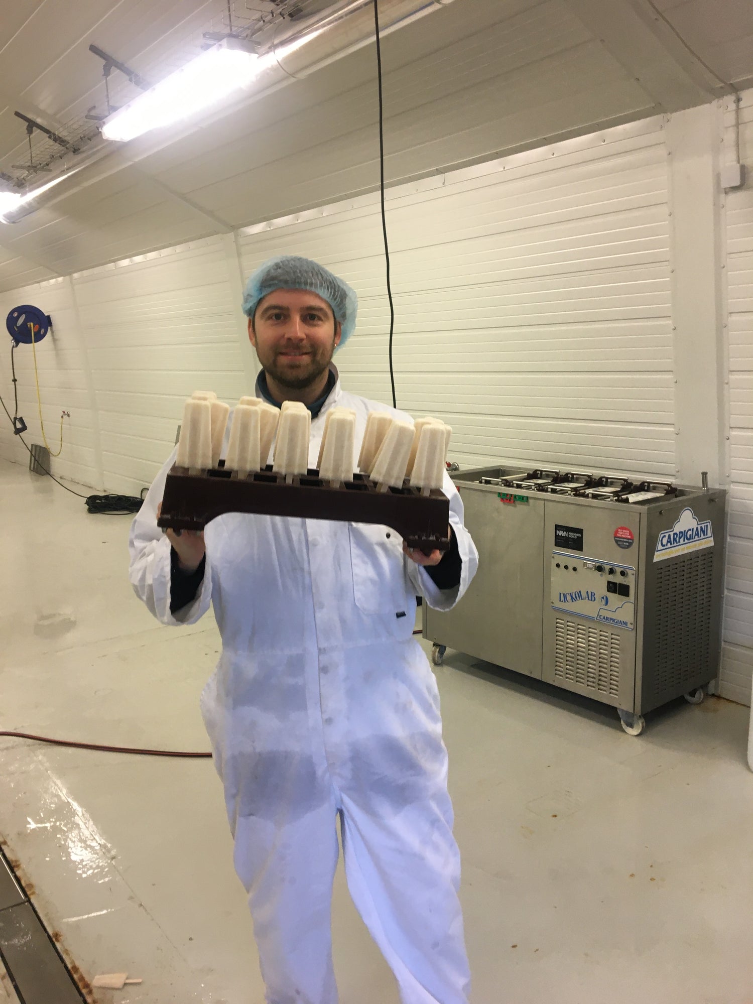 Med mere tiltro til egne is-evner, tog de til den lokale pizzabar, VØ Pizza, og butikscaféen Strandet, som var så søde at tage de håndlavede Panduro gør-det-selv-is ind på hylderne.
