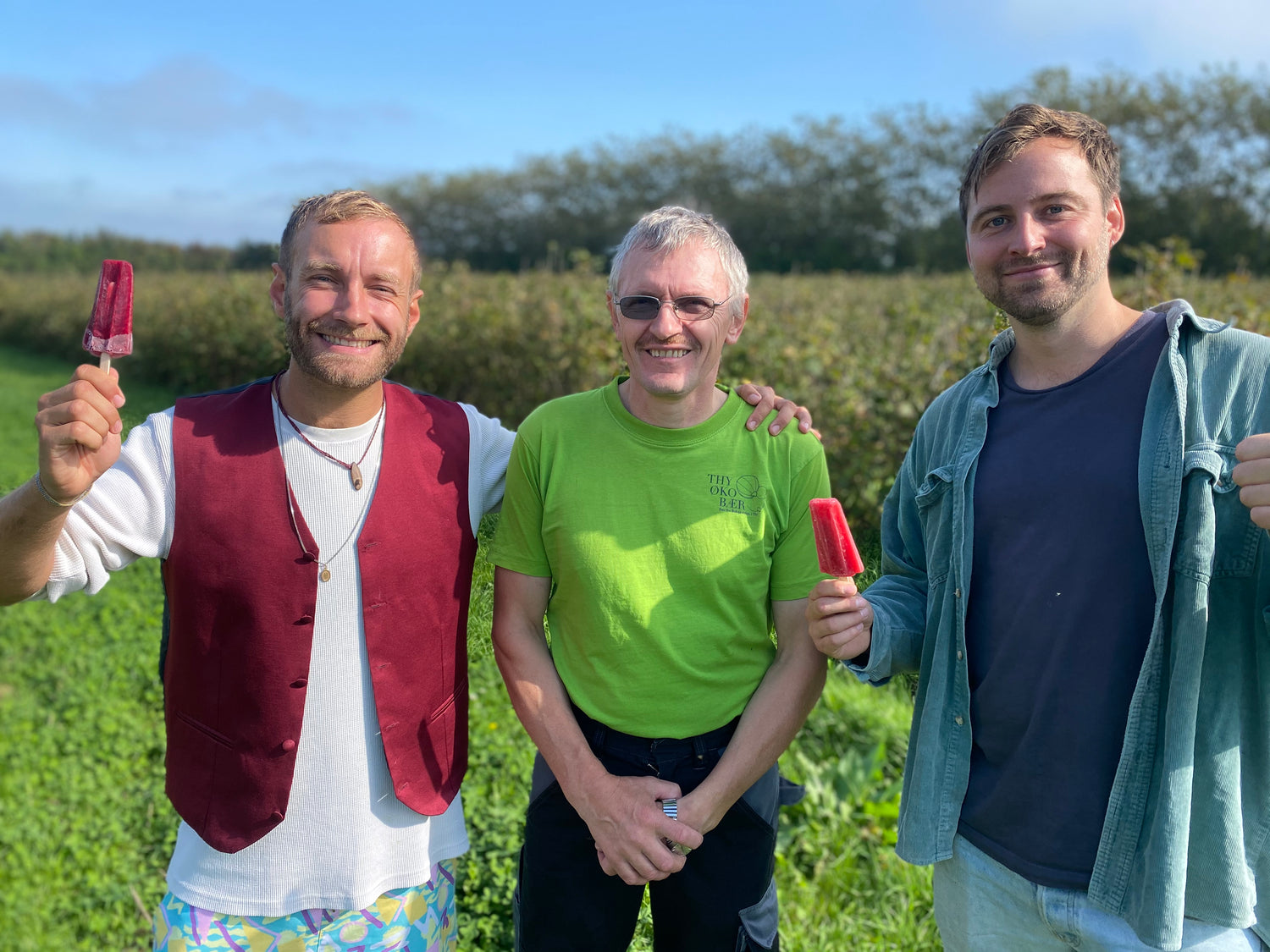 Niels og Rasmus snakkede i timevis omkring alt fra økologisk bærproduktion, til hvilken side af broen der er den rigtige og ikke mindst, om Niels kunne hjælpe ham med at fintjune opskriften. Og det kunne han! Niels kendte en lokal ismager, der bød ind på opskriftsdelen, og Niels selv kom med spandevis af koldpresset bær. Rasmus gik hjem og testede med de nye råvarer.