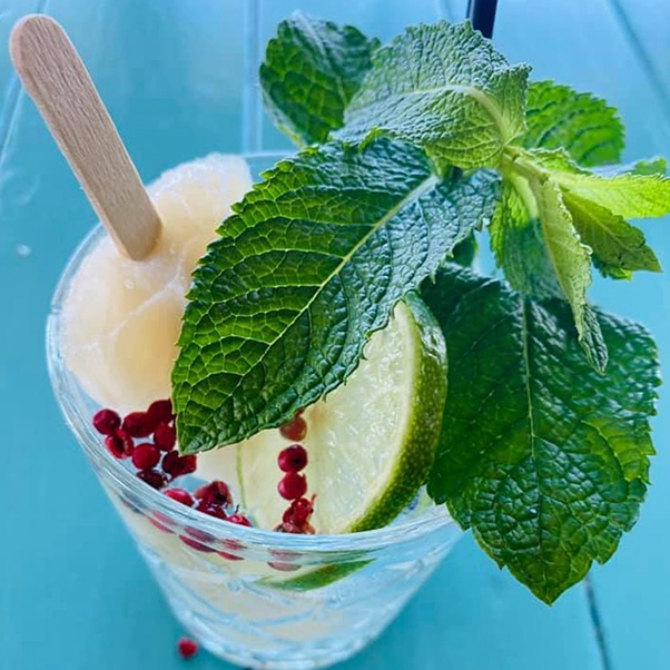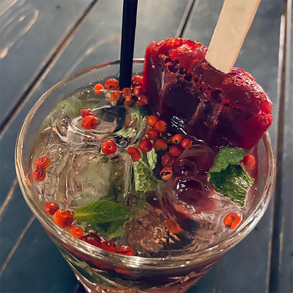 - Garnish: Myntheblade, tørrede bær eller en skive lime